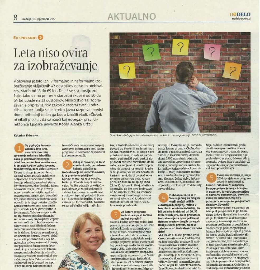 NeDelo, 10. september 2017 – Alenka Grželj, direktorica Ljudske univerze Koper.