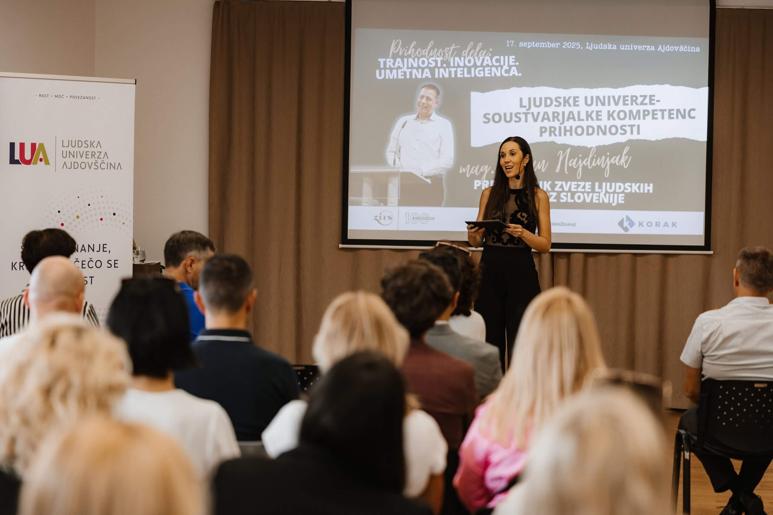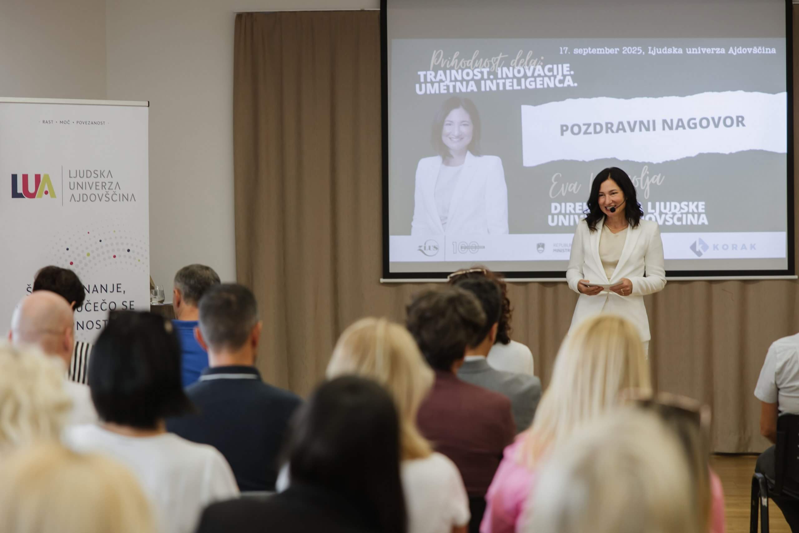 »Pomembno je, da se pogovarjamo o prihodnosti dela oz. kako lahko s trajnostnimi rešitvami, inovacijami in umetno inteligenco oblikujemo boljšo družbo,« je v uvodnih besedah povedala Eva Mermolja, direktorica Ljudske univerze Ajdovščina.